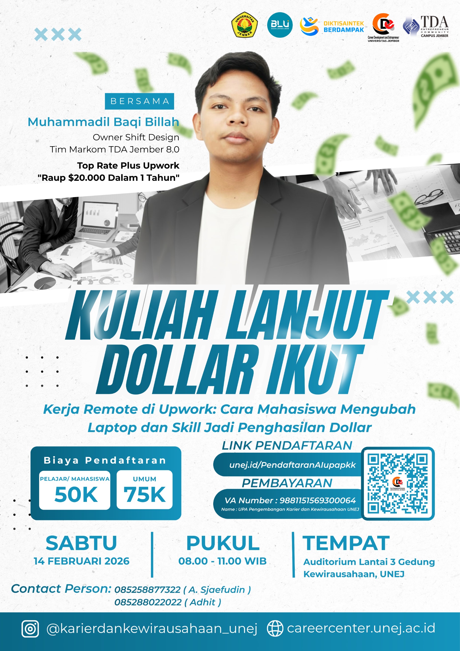 UPA Pengembangan Karier dan Kewirausahaan Universitas Jember bekerjasama dengan Tangan Di Atas (TDA) menyelenggarakan mini workshop, Dari mini workshop ini, kamu bakal belajar: